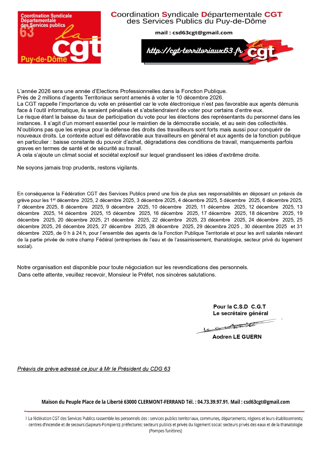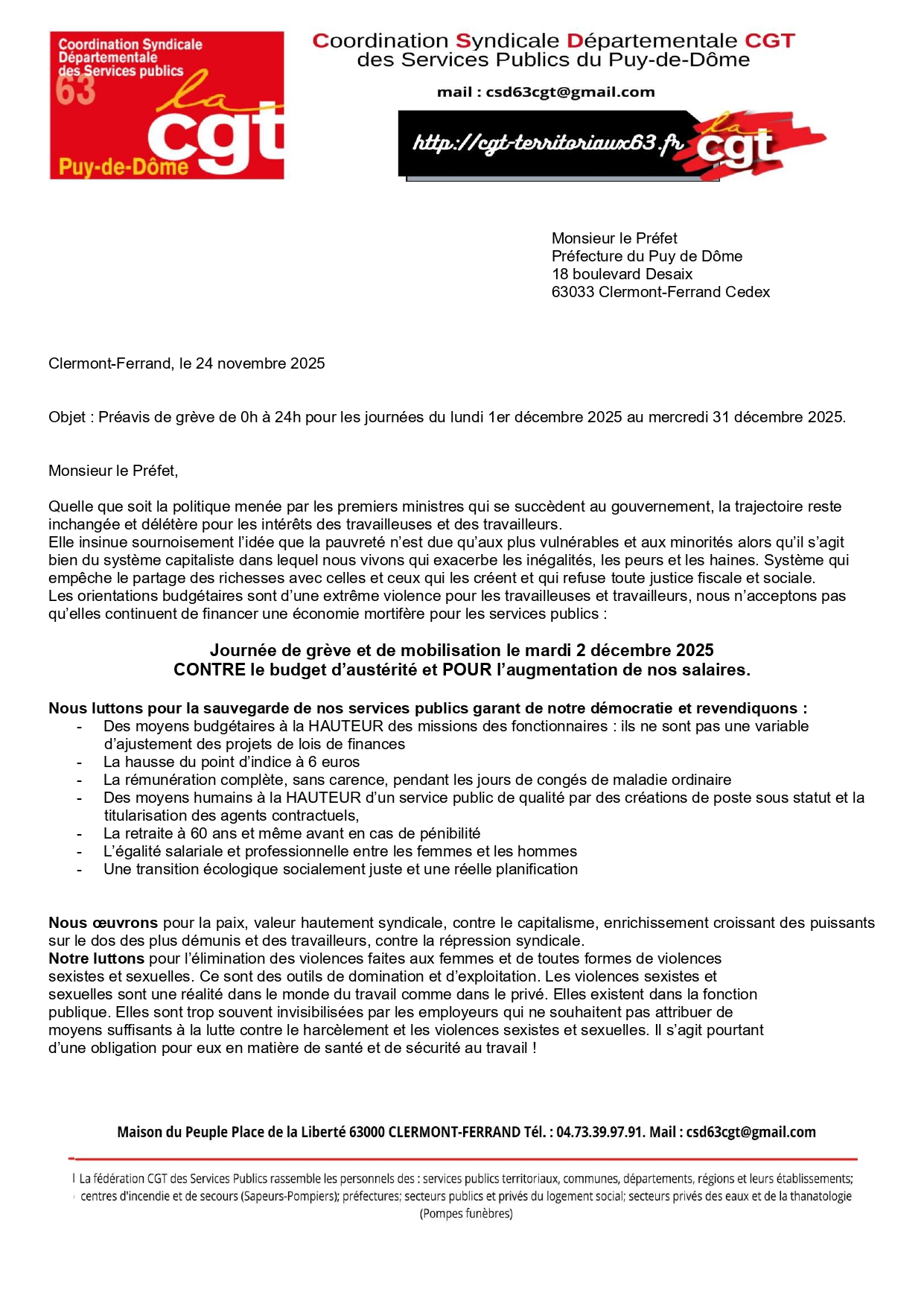 Préavis de grève de la CSD63 pour décembre 2025.Préavis Les grèves de Noël, c’est cool comme les bières de Noël, ça coûte un peu cher mais bon… Quand il faut.